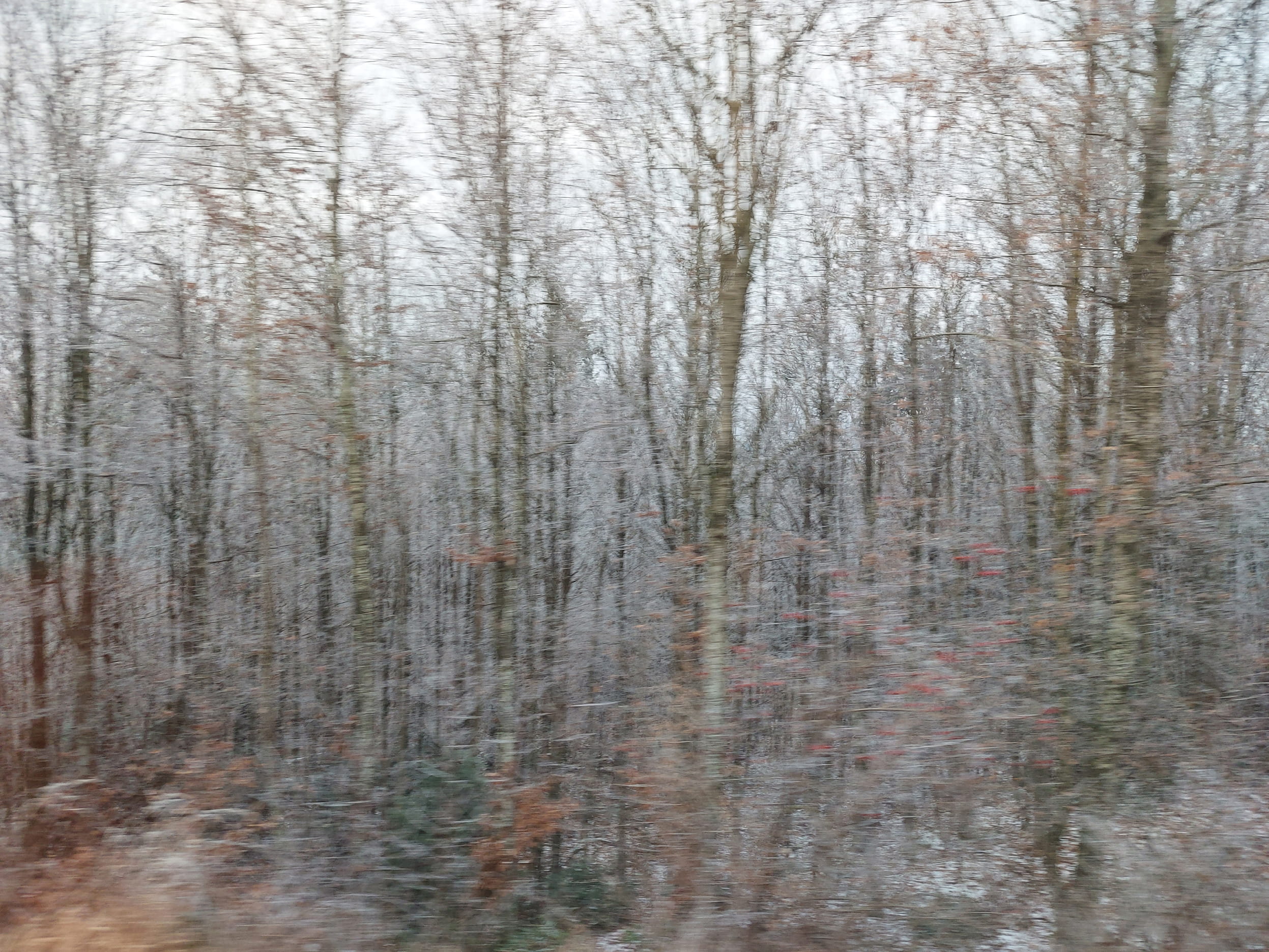 « Nous épions des bruits dans ces vides funèbres ; Nous écoutons le souffle, errant dans les ténèbres, Dont frissonne l’obscurité ; Et, par moments, perdus dans les nuits insondables, Nous voyons s’éclairer de lueurs formidables La vitre de l’éternité. » – Victor Hugo Le paysage qui défile en mouvement par la fenêtre d’une voiture ou d’un train est une sorte de travelling, de mouvement latéral horizontal. Les éléments perçus traversés par la vitesse restent fragmentaires, en une succession de vues, plus ou moins floues, saisies au vol, tel un instantané ; cette expérience visuelle crée une sorte de tableau abstrait, la surface de la vitre devient toile. Et quand les paysages et lumières extérieures déformés sont vus à travers des vitres embuées par des gouttes de pluie ruisselantes, après un orage, l’abstraction devient encore plus palpable. Ce sont ces « arrêts sur image » qui constituent ces différentes séries de photographies. Daniel Nikolic « traverse » un paysage réel, quel qu’il soit, avec ses yeux, ses pensées et ses sens. L’imagination prend son envol. Il s’éloigne du monde, renfermé de plus en plus dans ses rêves, ses visions, ses fantasmes : le spectacle animé propose souvent une surface de projection de l’intime, de la mémoire, du souvenir. Et une vive impression de solitude et de fuite du temps qui passe s’installe inexorablement.